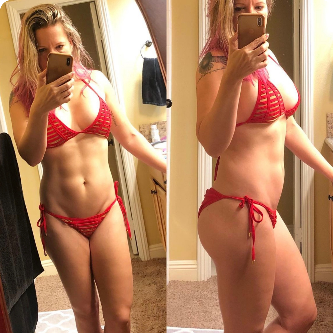 "I never would’ve thought my body composition would change in a year and I will say a lot has changed mentally ~ a total change of mindset, confidence and feeling of self worth!"